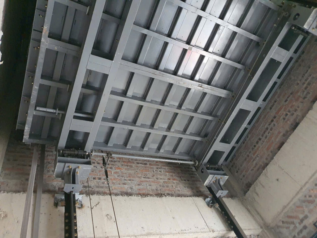 – Khung thép thang máy là bộ phận quan trọng nhất đảm bảo độ vững chắc, an toàn cho hàng hóa và người sử dụng.