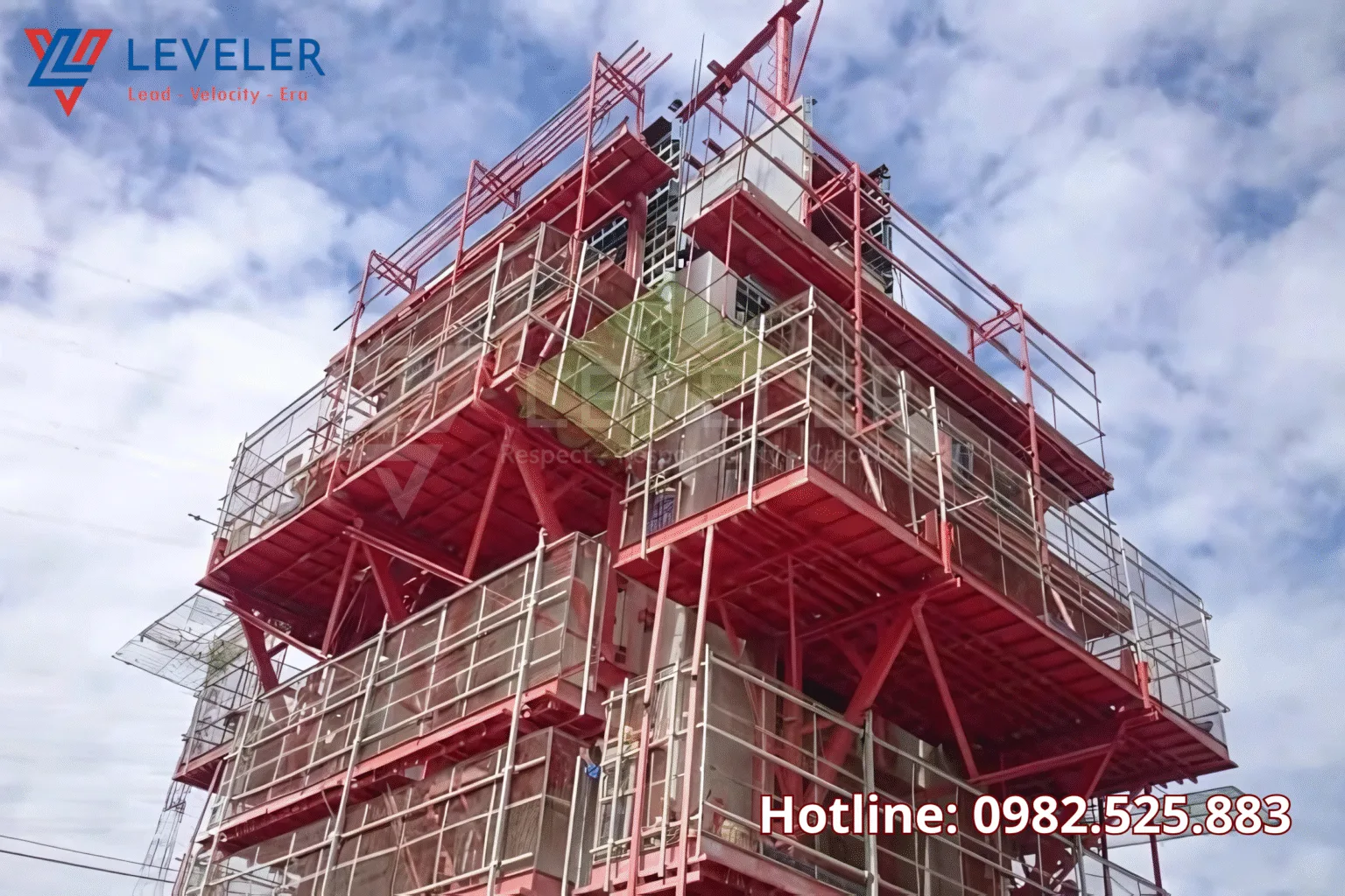 | Hệ thống vận chuyển vật liệu theo phương ngang và theo phương đứng. | Dùng để cung cấp bê tông tươi, cốt thép, và các vật tư khác từ mặt đất lên sàn thi công. |