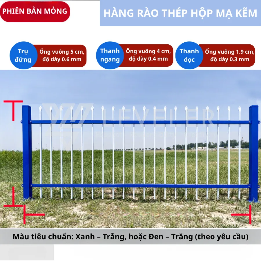 Hàng rào thép hộp mạ kẽm Leveler là loại lan can bảo vệ ngoài trời được thiết kế thanh lịch, kết hợp giữa tính thẩm mỹ và độ bền cao. Sản phẩm thường được sử dụng để bảo vệ khuôn viên trường học, nhà máy, khu dân cư, biệt thự, nhà máy chế xuất, công viên, khu cách ly… Với lớp mạ kẽm chống ăn mòn và kiểu dáng u độc đáo, đây là lựa chọn lý tưởng để vừa nâng cao an ninh vừa làm đẹp cảnh quan.