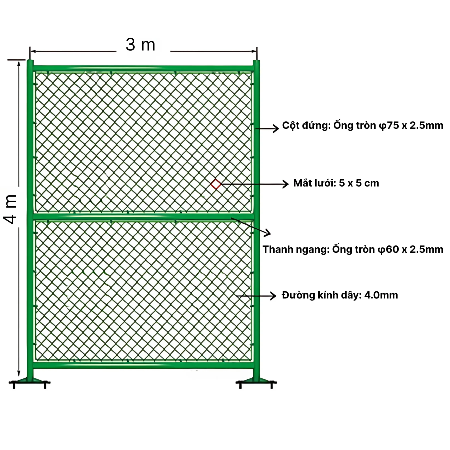 Quý khách có thể thay đổi kích thước mặt lưới và cột trụ theo nhu cầu. Xin liên hệ Hotline 0983.525.882 để được tư vấn nhanh chóng !