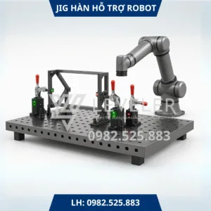 Gợi ý từ kỹ sư của LEVELER: Với các hệ thống robot hàn, nên sử dụng mặt bàn jig có mã lỗ chuẩn DIN (16 mm/28 mm) để dễ thay đổi cơ cấu gá khi chuyển đổi model sản phẩm – giúp tiết kiệm chi phí đầu tư dài hạn