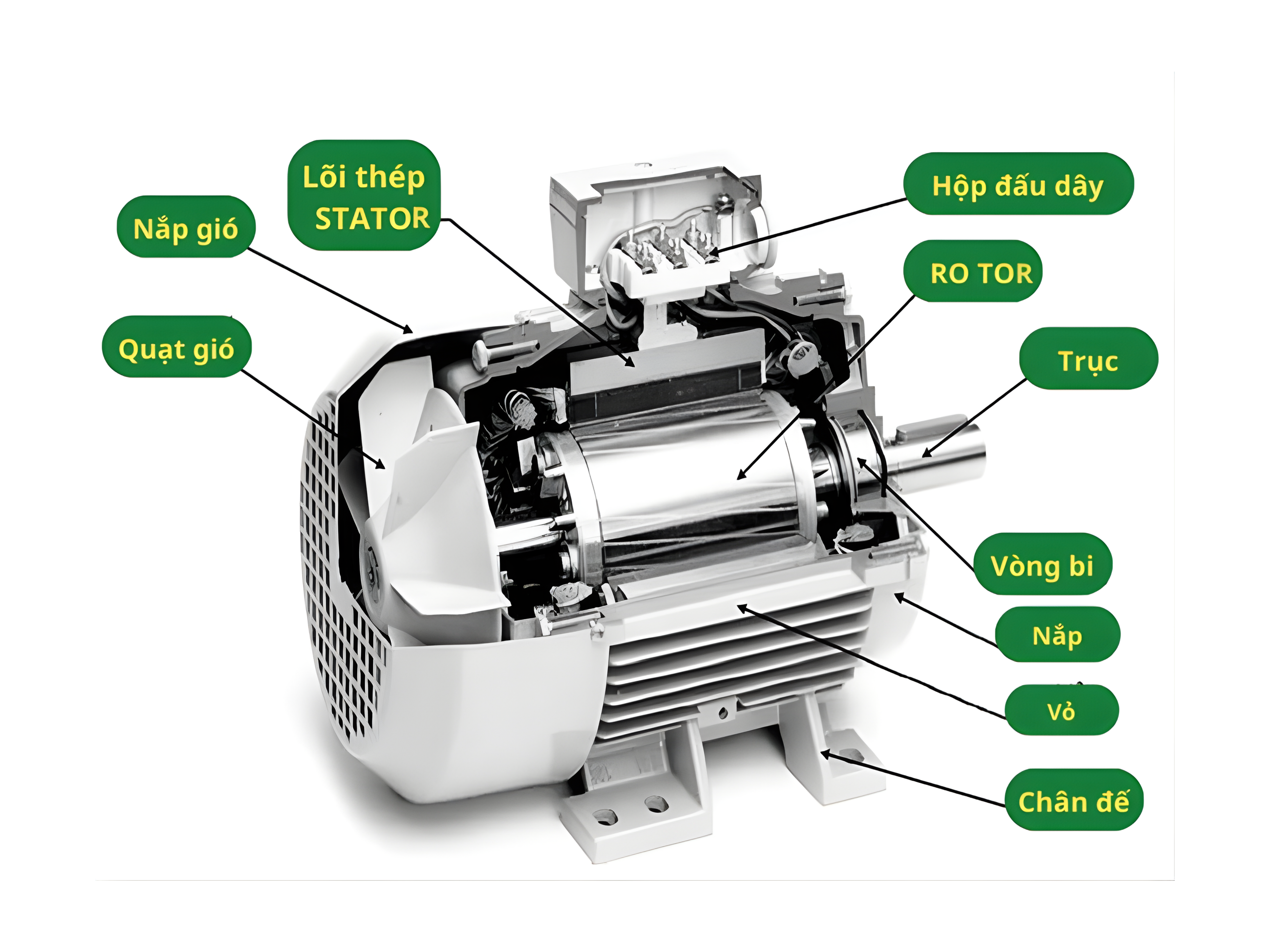 Motor giảm tốc có cấu tạo tương đối đơn giản, gồm nhiều bộ phận kết hợp với nhau để thực hiện chức năng giảm tốc và tăng lực. Tuy nhiên, về tổng thể, thiết bị này được chia thành 2 phần chính là động cơ điện và hộp giảm tốc, hoạt động đồng bộ để tạo ra hiệu quả vận hành tối ưu.