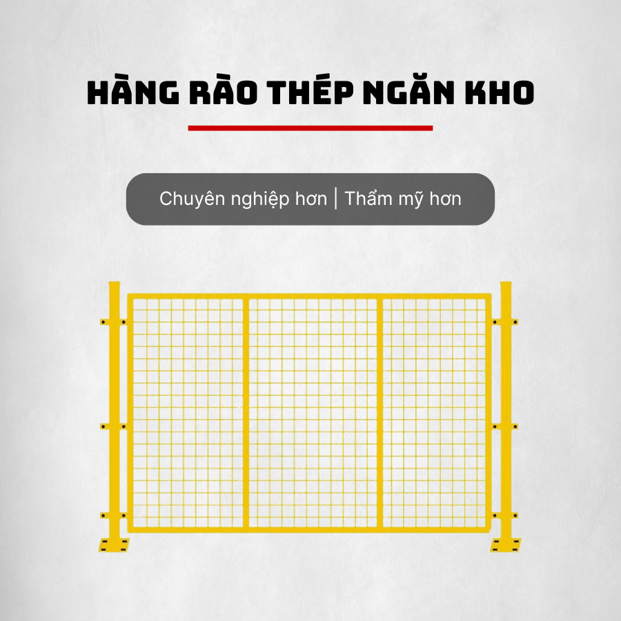 Hàng rào vách lưới là giải pháp ngăn cách hiệu quả trong kho xưởng, giúp phân khu, tạo ranh giới an toàn giữa các khu vực làm việc, lưu trữ hàng hóa hoặc lối đi bộ. Thiết kế chắc chắn, dễ lắp đặt, màu sắc cảnh báo rõ ràng, phù hợp cho các khu vực cần kiểm soát và bảo vệ thường xuyên. Linh hoạt tùy chỉnh theo từng mặt bằng thực tế trong nhà máy.