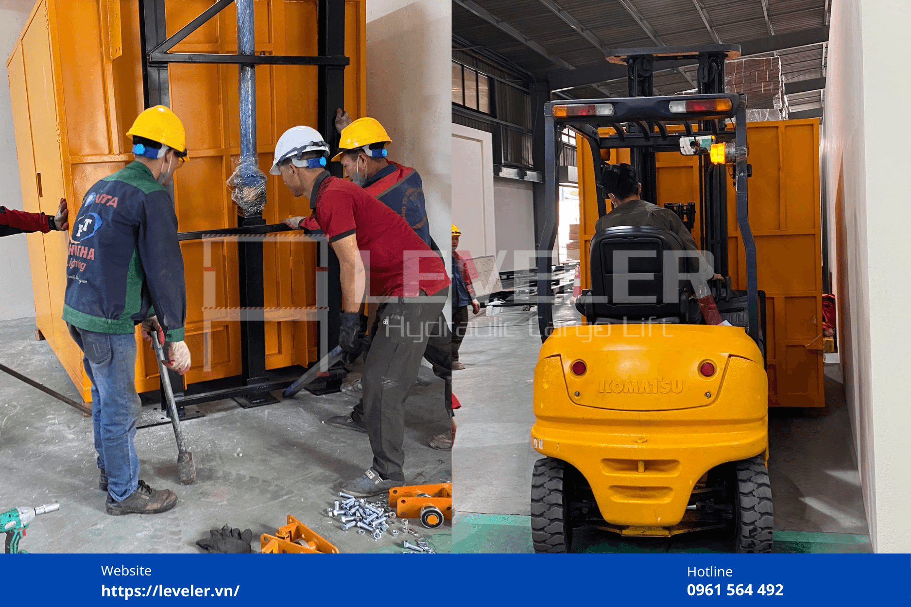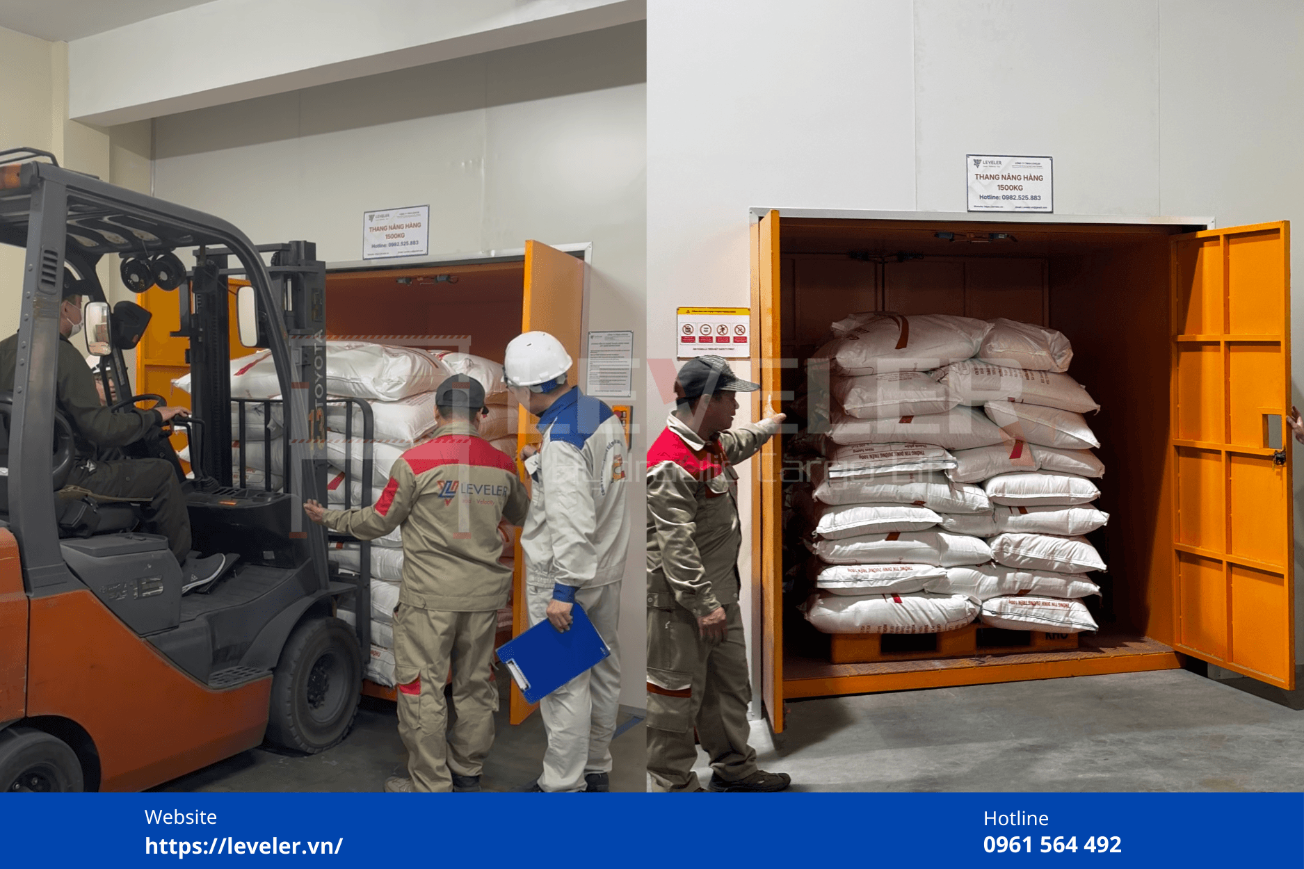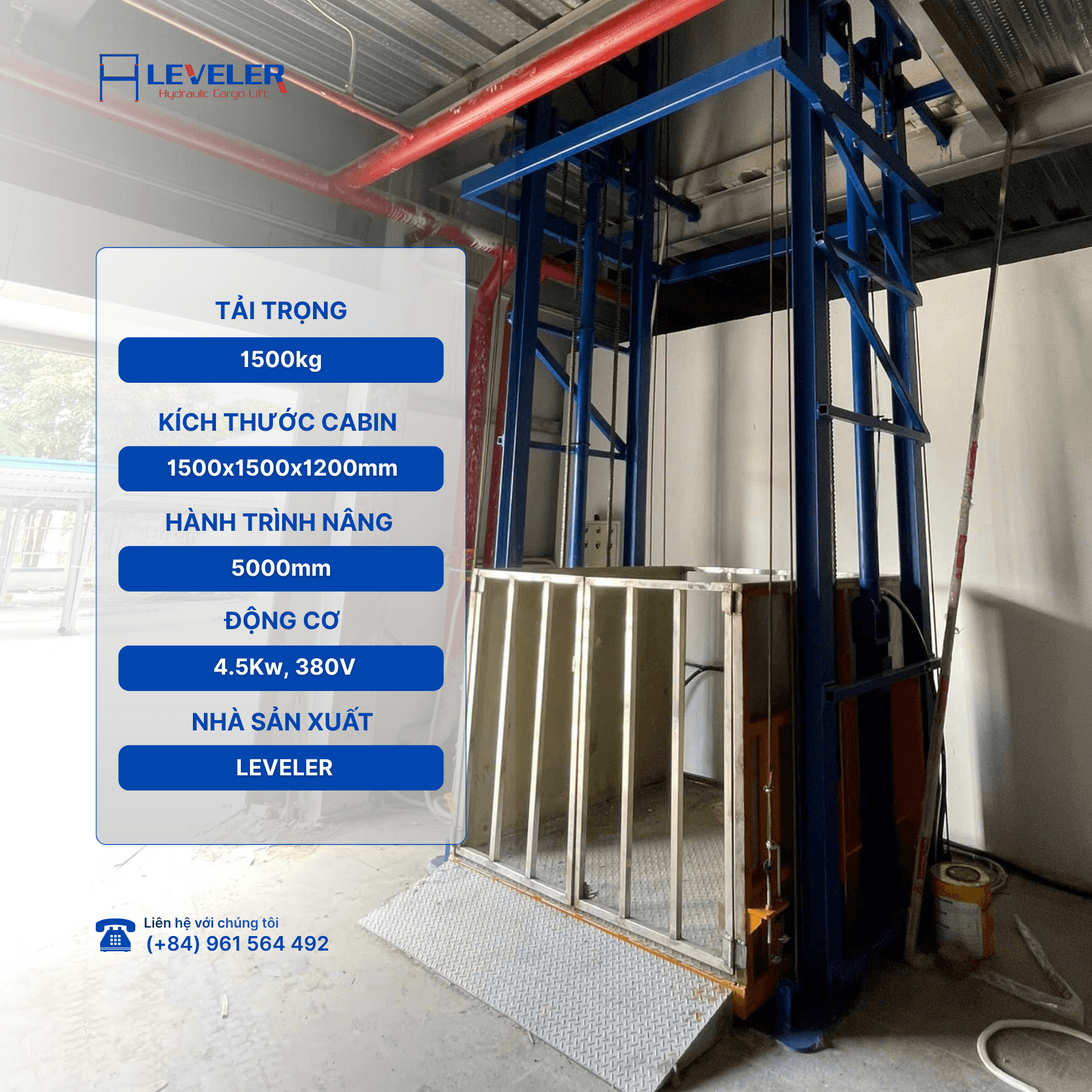 - Tiếp nhận khách hàng thông qua Fanpage “Thang nâng hàng công nghiệp Leveler 1-5 Tấn” hoặc qua hotline 0961564492.