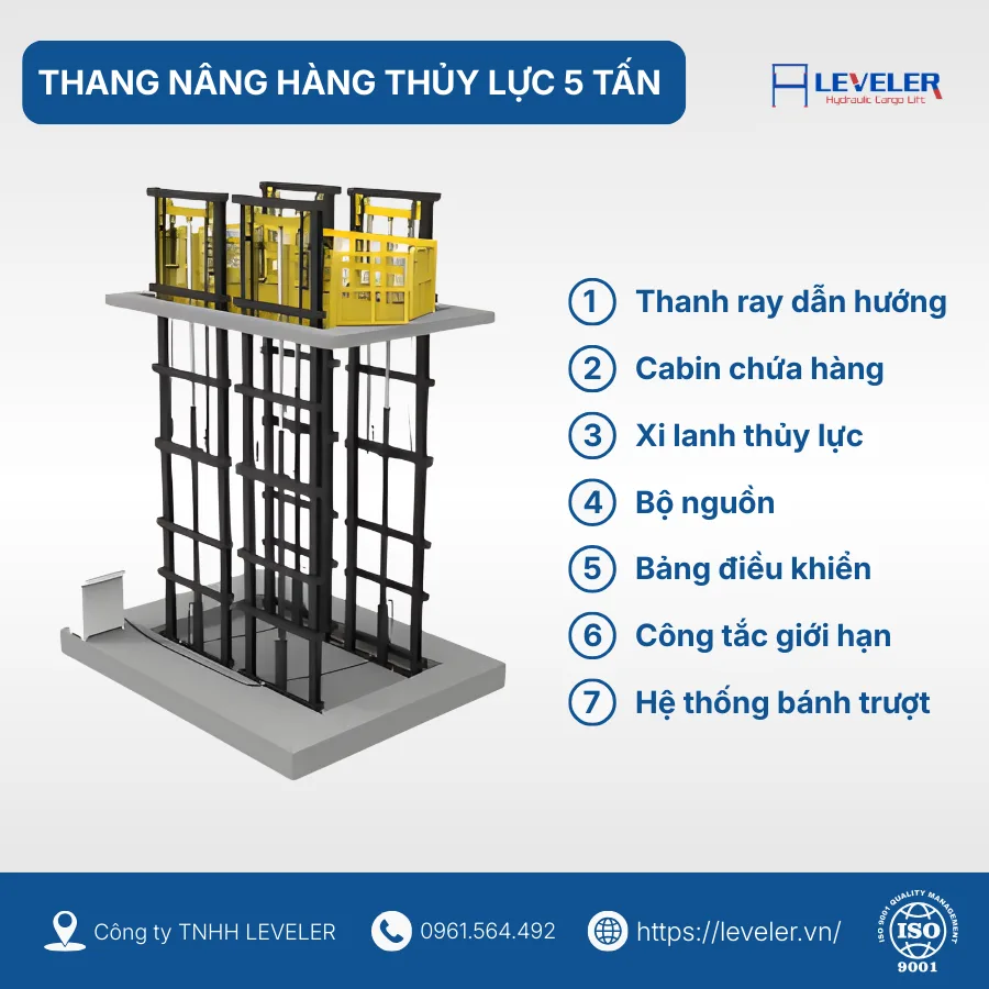 Cấu tạo chi tiết Thang Nâng Hàng Thủy Lực 5 Tấn LEVELER